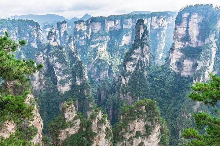 Thung lũng Yuanjiajie: Thung lũng này được biết đến với tảng đá nổi tiếng "Đỉnh Núi Đế Vương". Từ đỉnh này, bạn có thể nhìn ra toàn bộ vùng Vũ Lăng Nguyên với những ngọn núi đá vôi và rừng núi bao quanh.