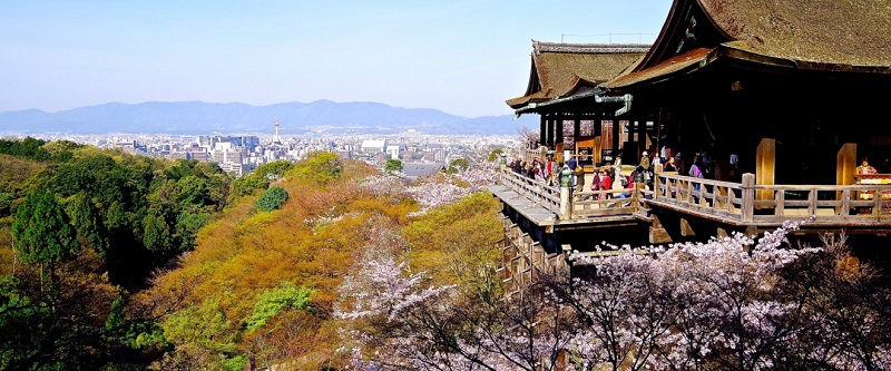Đền chùa chính là niềm tự hào của Kyoto, bạn không thể không ghé thăm những ngôi chùa bởi đó là nơi còn động lại rất nhiều hơi thở của những thời đại trong quá khứ cũng như lối kiến trúc truyền thống vẫn được giữ gìn cẩn thận cho đến ngày hôm nay. Chùa Kiyomizu (Chùa Thanh Thủy) là một hạng mục của di sản văn hóa cố đô, nổi tiếng với hàng hiên rộng lớn bằng gỗ nhô ra khỏi thung lũng thơ mộng mang lại không gian thoáng đãng và tầm nhìn bao quát cho du khách có thể ngắm cảnh thành phố. Đây cũng là địa điểm lý tưởng để ngắm hoa anh đào mùa xuân hay thưởng thức lá vàng lá đỏ mỗi độ thu về.