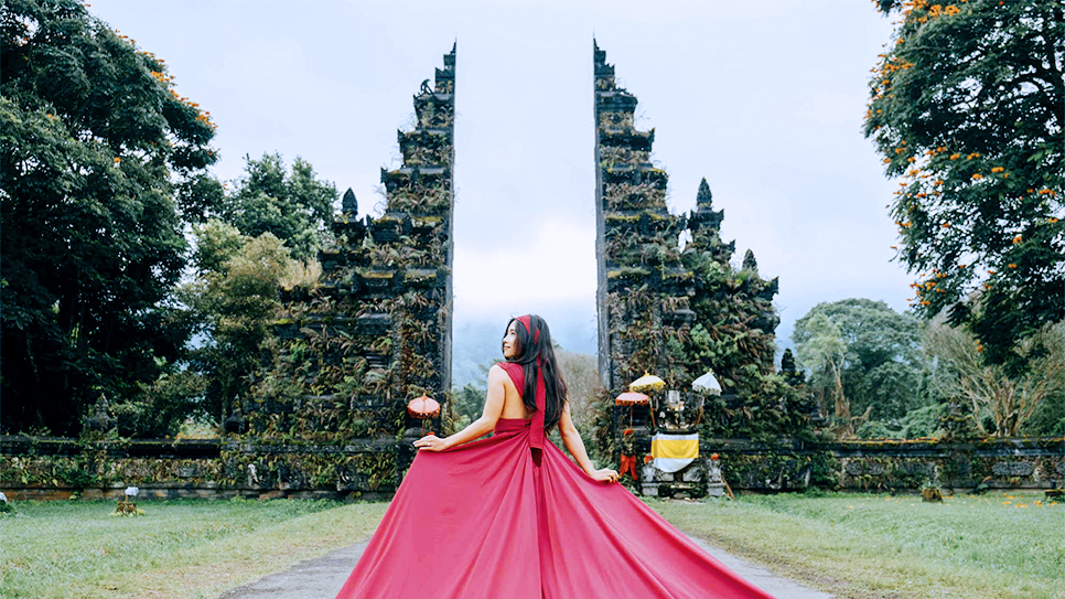 Sau đó, xe đưa đoàn đi thăm Cánh cổng trời Handara Gate với background là con đường xanh mướt mát và nền mây trời núi non. Tại đây các du khách tha hồ tạo dáng để cho mình những bức ảnh đẹp và đặc trưng nhất của hòn đảo Bali xinh đẹp.