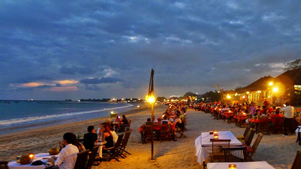 17h30: Quý khách tới bãi biển Jimbaran thưởng thức Bữa tối BBQ hải sản trên bờ biển. Tại đây Quý khách có thể ngắm hoàng hôn trên biển, thưởng thức bữa tối với nước dừa tươi, lắng nghe ban nhạc biểu diễn trong một không gian biển thoáng đãng và trong lành.